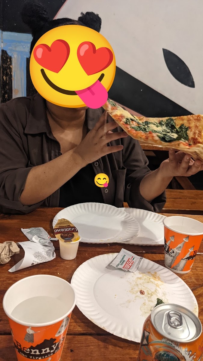 Exceptional food and service for an incredibly fair price. Huge slices of pizza and an amazing, fun-loving decor with paper plate art lining the walls. I look forward to coming back!