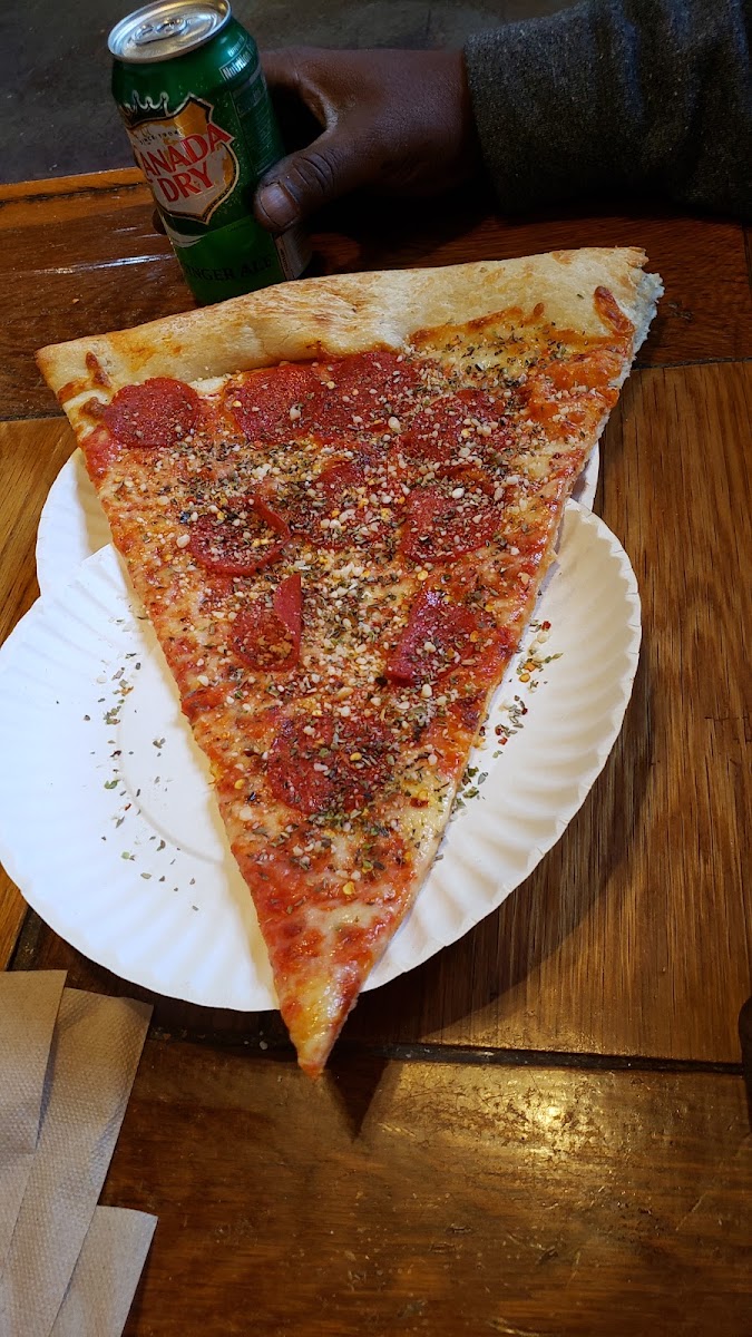 The pepperoni pizza was absolutely phenomenal. It taste like real New York pizza. Nice and salty excellent sauce, quality meat, quality cheese. My best friend loved the buffalo pizza that they had as a special. Keep in mind that this is a very casual laid-back place to grab a bite of pizza. Nothing uplift.